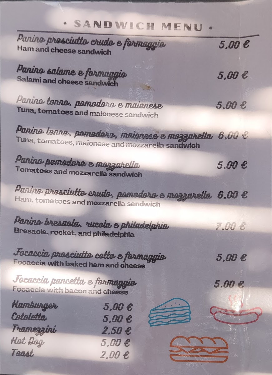 Moreover, the café is not just about quality food and drinks; it’s also equipped with essential amenities, including clean water closets with keys provided at the bar – a feature that always pleases guests. The affordability of snacks and meals adds to its charm, ensuring that a day at the beach doesn’t break the bank. Whether it's enjoying a cold beer, a filling sandwich, or a delightful pastry, Bar Contu provides a satisfying culinary experience.
